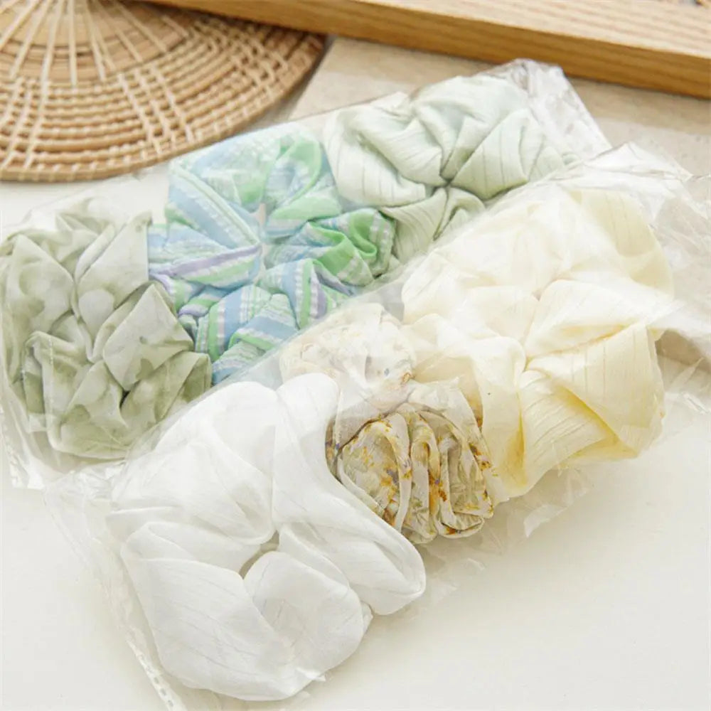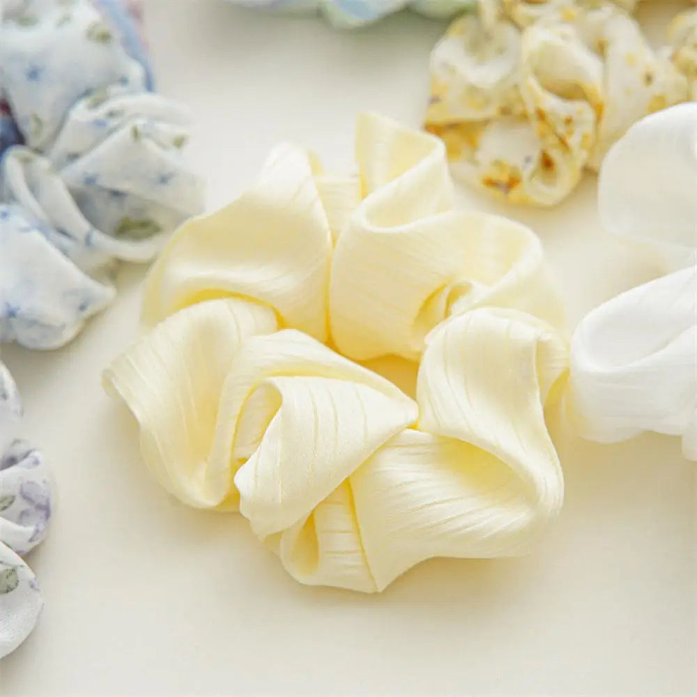 Le motif floral des chouchous coréens apporte une dimension esthétique et charmante aux coiffures. Les couleurs disponibles, telles que le jaune, le bleu, le violet, le vert et le rose, permettent de coordonner facilement ces accessoires avec diverses tenues, qu’elles soient casual ou plus sophistiquées. La taille de chaque chouchou, d’environ 10 cm, permet de créer un volume élégant pour les queues de cheval, chignons ou demi-queues. L’effet de tissu légèrement froissé et le design circulaire confèrent un aspect chic et dynamique qui transforme un accessoire simple en un élément de mode essentiel.